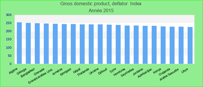 The GDP deflator is derived by dividing current price GDP by constant price GDP and is considered to be an alternate measure of inflation. Please note: Data are expressed in the base year of each country's national accounts. Index.