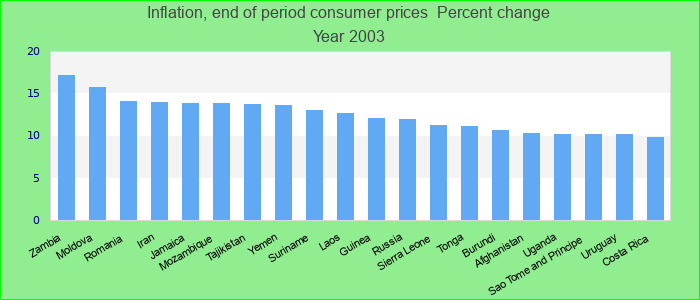 Inflation, end of period consumer prices 2003