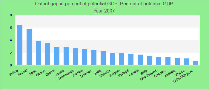 Output gap in percent of potential GDP 2007